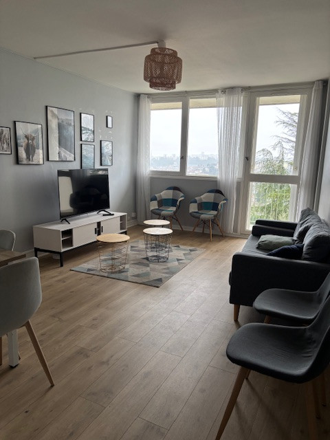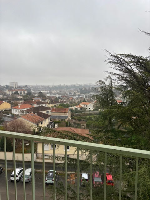 Côté extérieur, le séjour donne accès au balcon avec une vue imprenable sur Poitiers.